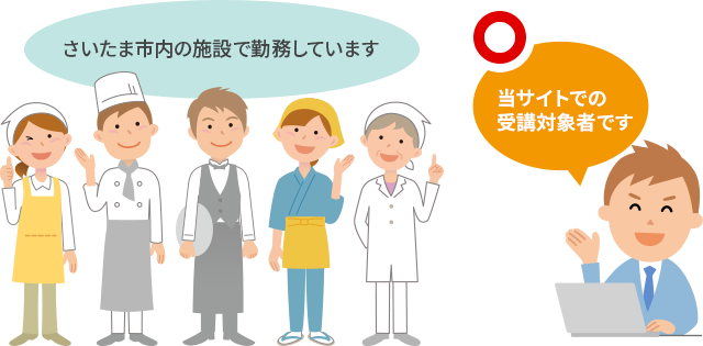 ※さいたま市内以外で食品関連施設に勤務している方は当協会eラーニング方式講習会を受講できませんのでご注意願います。
