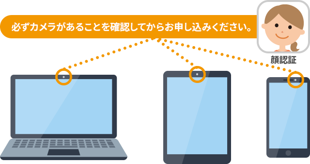 ※4 顔認証を行いますので、カメラ付きパソコン、スマートフォン、タブレットなど、顔認証が可能な機器をご使用ください。その他の機器はご使用になれません。